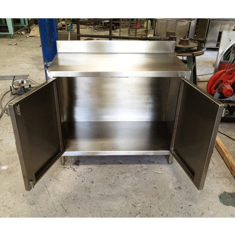Cabinets: For years we have crafted numerous cabinet designs of all sizes for working kitchens and behind front counters. Tell us what would meet your requirements; size, how many shelves, configuration of shelves, height of back splashes if setting close to wall, open front, closing door front with, or without ability to lock. Just let us know what you need, together we’ll work it out and produce the quality equipment you desire, expect.