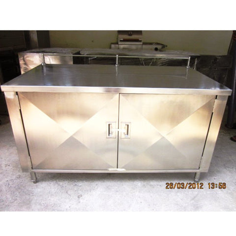 Cabinets: For years we have crafted numerous cabinet designs of all sizes for working kitchens and behind front counters. Tell us what would meet your requirements; size, how many shelves, configuration of shelves, height of back splashes if setting close to wall, open front, closing door front with, or without ability to lock. Just let us know what you need, together we’ll work it out and produce the quality equipment you desire, expect.